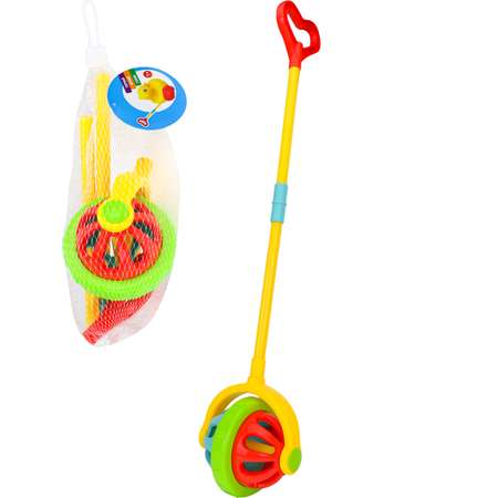 Детская игрушка-каталка на палочке "Шар с колокольчиком" будет незаменимым спутником на прогулке, или же весёлым развлечением дома.