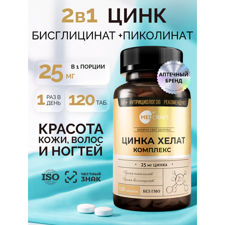 Цена на Комплексный хелатный цинк MedCraft 120 таблеток - 1022 ₽.