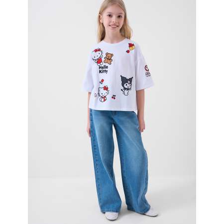Футболка оверсайз для девочки подростка. Модель выполнена из эластичного хлопкового трикотажа джерси. Яркие принты с любимыми персонажами Хеллоу Китти. Горловина круглая.