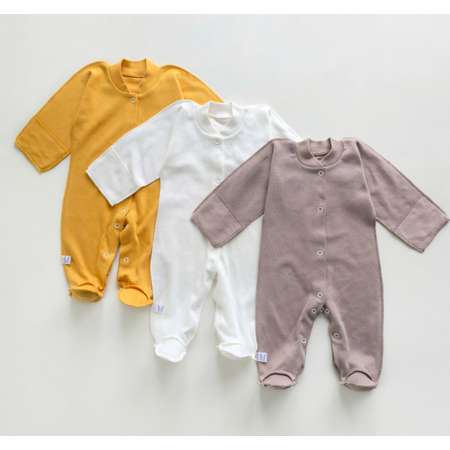 Слип для новорождённых с длинным рукавом — идеальный выбор для вашего малыша. Набор включает 3 детских слипа, которые представлены в нежных трендовых оттенках - горчичный, молочный и бежевый.