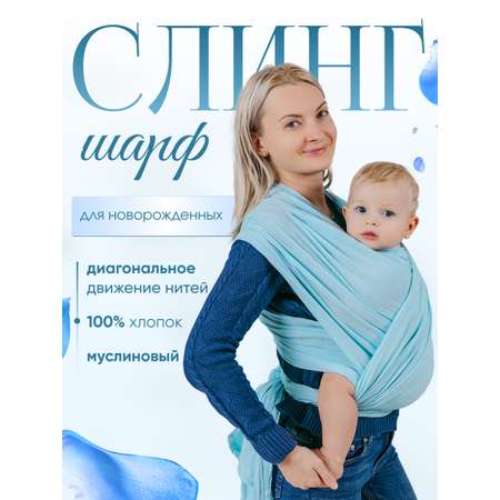 Слинг-шарф inlovery «Муслин» хлопок голубой