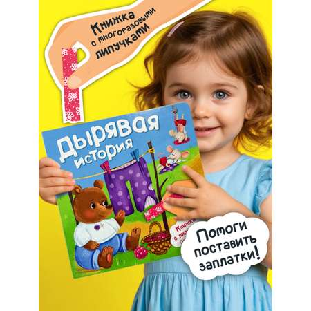 Виммельбух для малышей Интерактивная книга с многоразовыми наклейками - липучками в виде пластырей Дырявая история - это книга, которая сделает из Вашего ребенка настоящего помощника и позволит ему ставить различные заплатки прямо при чтении книги. Детская книга относится к категории Книги: Досуг и творчество детей. Эта книга представляет собой настоящую находку для родителей, желающих развивать своего ребенка и расширять его знания.