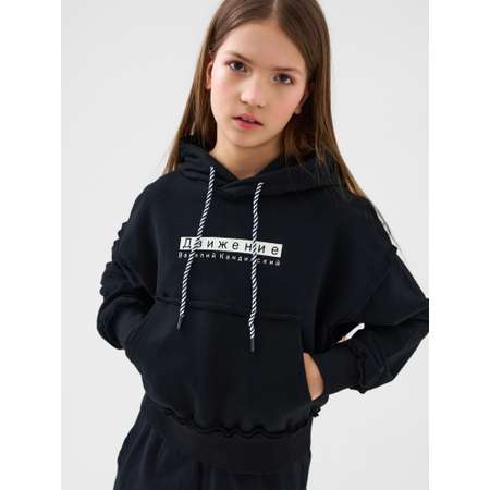 Худи оверсайз для девочки подростка. Выполнен из хлопкового футера без начеса. На груди — надпись, а на спине — красочный художественный принт. Худи украшено декоративными наружными швами, которые придают изделию стильный необработанный вид. Капюшон регулируется с помощью шнура, а спереди есть удобный карман-кенгуру. Низ изделия и рукава оформлены эластичными резинками.