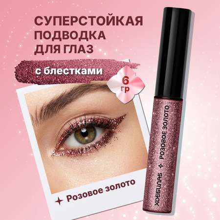 Цена на Цветная глиттерная подводка с блестками ХОББИЛАБ для макияжа глаз розовое золото с кисточкой - 487 ₽.