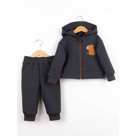 Детский комплект Капибара - идеальное сочетание комфорта и милого дизайна для маленьких модников. Состоит из толстовки на молнии с капюшоном и брючек на манжетах. Выполнен из пике с небольшим начёсом (80% хлопок, 20% п/э).