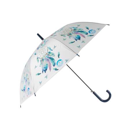 Полуавтоматический зонт-трость с этническим декором. Матовая бархатистая поверхность зонта отлично отталкивает влагу, гладкая рукоять удобно ложится в ладонь, а изображение индейского амулета – ловца снов, защищающего от злых духов, обережёт покой владельца. Материал: металл, пластик. Размер зонта в сложенном виде: 40*110*815 мм. Размер зонта в разобранном виде: 815*1010*1010 мм. Диаметр купола: 1010 мм. Количество спиц: 8. Материал спиц: полимер. Конструкция зонта: трость. Механизм: полуавтомат.