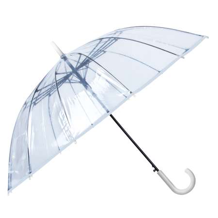 Полуавтоматический зонт-трость с прозрачным куполом. Прочный металлический шток и укрепленные спицы способны выдержать большое количество открываний и закрытий, не боятся даже сильного ветра. Элегантный аксессуар - уместное дополнение к деловому или классическому образу. Материал: ПВХ, пластик, металл. Размер зонта в сложенном виде: 50*113*815 мм. Диаметр купола: 103 см. Количество спиц: 14 Конструкция зонта: трость Механизм: полуавтомат.