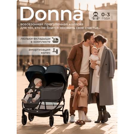 Цена на Коляска прогулочная для двойни Sweet Baby Donna Grey серый - 37129 ₽.