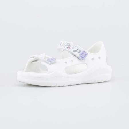 Пляжная обувь с открытом носом выполнена из материала ЭВА. Такие летние сандалии для девочки отлично подходят как обувь для купания, для моря или для бассейна. ЭВА – лёгкий, гибкий, эластичный материал, который хорошо амортизирует. Его легко мыть, он быстро сохнет и устойчив к антигрибковым препаратам, что важно при посещении бассейна или аквапарка. Детские пляжные сандалии имеют полуоткрытую конструкцию, которая обеспечивает комфорт в жаркую погоду. Перфорация создает дополнительную вентиляцию. Сандалии на липучках, выполненных из искусственной кожи, легко обувать и снимать. Веселый принт добавляет летнего настроения. Анатомически правильная внутренняя форма соответствует изгибам детской стопы и обеспечивает ей необходимую поддержку. Рельефные элементы на стельке защищают мокрые ножки от скольжения. Пляжные сандалии можно украсить декоративными элементами – котофишками. Сделано в России.