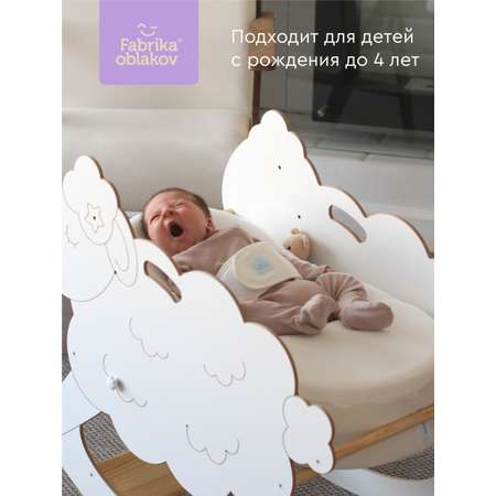 Пользуетесь коконом для новорожденного? Выбираете удобную и стильную качалку для малыша? Качалка «Овечка Соня» - это то, что вы искали. Она имеет размеры 77 х 67 х 43,5 см и идеально сочетается с коконом «Зёвушка». При этом аксессуар обеспечивает мягкое качание и позволяет использовать кокон, не занимая место на диване или кровати. Это очень удобно: дома, на даче, в любом помещении у малыша будет собственное безопасное и уютное место, а у мамы – свободные руки. «Овечка Соня» изготовлена из натурального дерева: торцевая часть из ламинированного МДФ, а перекладины и доски – из надёжного массива сосны. Все материалы полностью безопасны, не имеют запаха. Качалка легко собирается. Она подойдет семьям, которые убеждены, что с первых дней малыша должны окружать красивые вещи: минималистичная овечка выполнена в нейтральной цветовой гамме. Качалка отлично впишется в любой интерьер и подойдет для фотосессий. Еще один плюс – аксессуар прослужит вам и вашему малышу не один год. Когда ребёнок подрастет вы можете поменять положение перекладины и «Овечка Соня» превратится в отличную качалку с безопасной амплитудой. Ваш ребёнок полюбит «Овечку» и сможет качаться в ней до 4 лет. Напомним, что в целях безопасности, ребёнок должен качаться только под присмотром родителей. Покупайте качалку «Овечка Соня» от «Фабрики облаков» и наслаждайтесь каждым мгновением рядом с малышом.