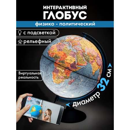 Глобус Globen интерактивный физический политический с подсветкой и VR очками 32 см