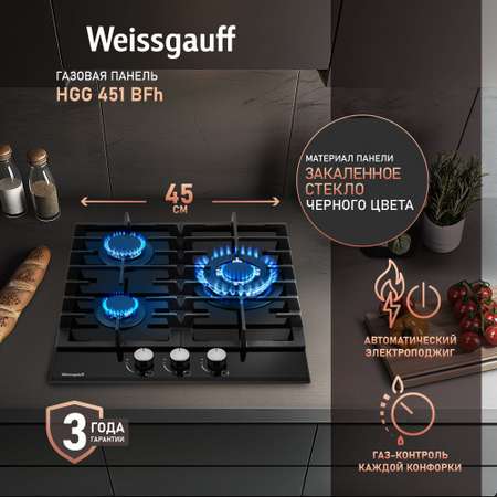 • Ширина 45 см позволит установить газовую панель Weissgauff даже в самую небольшую кухню!