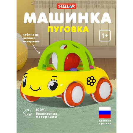 Машинка «Пуговка» Российской Торговой марки СТЕЛЛАР - станет любимой игрушкой самых маленьких непосед. Кабина машинки выполнена из мягкого материала, главное назначение которой – помогать малышам в период прорезывания зубов. Внутри кабины перекатывается шарик, который привлечет внимание малыша приятным звучанием и не оставит его равнодушным.