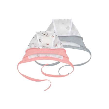 - Удобные завязки: Шапочки надежно фиксируются на головке малыша с помощью завязок, позволяя регулировать посадку и не соскальзывать.