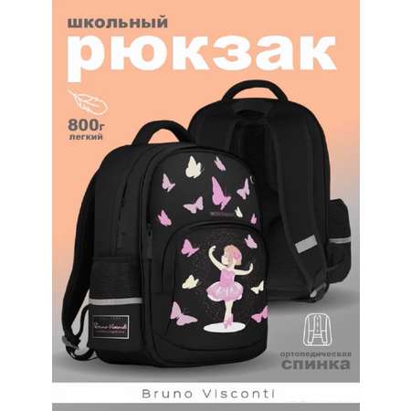 Рюкзаки школьные Bruno Visconti синий с эргономичной спинкой Балерина с бабочками