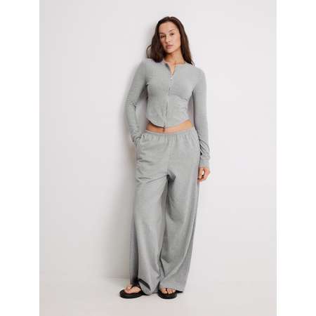Женские свободные брюки палаццо — это невероятно удобная и стильная модель для создания расслабленного образа. Широкие брюки выполнены из эластичного меланжевого полотна, которое приятно на ощупь. Модель полной длины подойдет для ношения с обувью разной высоты. Эластичный пояс на мягкой резинке обеспечивает комфортную посадку для разных типов фигуры. Средняя посадка удобна для повседневного ношения. Практичности добавляют боковые карманы, расположенные в швах. Дополните модель комплектным лонгсливом на молнии (31200310024), чтобы составить утонченный женский костюм для дома или расслабленного отдыха.