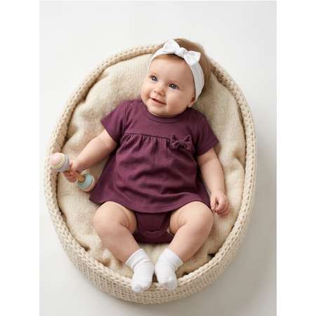 Идеальное решение для вашей малышки! Боди-платье с коротким рукавом выполнено из мягкого и высококачественного трикотажа, обеспечивающего максимальный комфорт для чувствительной кожи вашего ребенка. Это универсальная вещь, которая сочетает в себе элегантность платья и практичность боди.