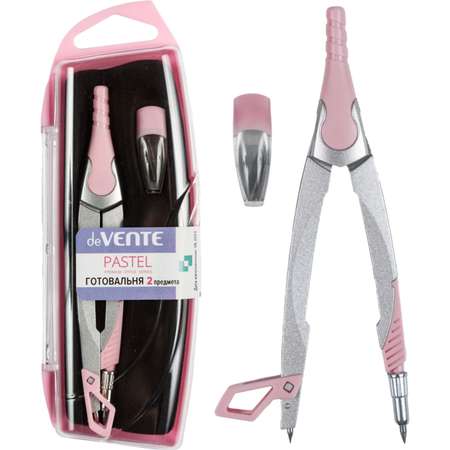 Готовальня "deVENTE. Pastel" (02 предмета) в пластиковом футляре с черным ложементом, цвет футляра - пастельный розовый
