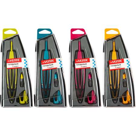 Готовальня "deVENTE" (03 предмета) цветной корпус, в пластиковом футляре с блистерным подвесом, ассорти 4 цвета