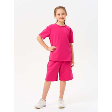 Летний детский костюм "243502" от CosmoTex — комплект шорты и футболка из качественного футера с оверсайз кроем.