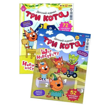 Набор журналов для малышей «Три Кота» (11/25 + 12/25) с наклейками — это комплект детских развивающих журналов с любимыми героями популярного мультсериала. Журнал три кота с Коржиком, Карамелькой, Компотом, мамой Кисулей, папой Котом и другими персонажами на каждой странице. Журнал для малышей с увлекательными историями, детскими комиксами, раскрасками для детей, головоломками, лабиринтами и развивающими заданиями. Мультяшный журнал с крупными иллюстрациями и понятными инструкциями для самых маленьких. В каждом номере — наклейки три кота для выполнения заданий и игр. Раскраска три кота с любимыми героями. Головоломки для малышей на логику и внимание. Развлечения для детей с пользой — тренировка мелкой моторики, памяти и усидчивости. Комиксы для детей про приключения котят в волшебном мире. Журнал с наклейками для детей от 2 до 5 лет. В наборе два журнала с номерами 9 и 10 за 2025 год. Три кота набор для маленьких поклонников. Журналы для малышей с развивающими элементами. Наклейки три кота для игр и выполнения заданий. Детские головоломки и раскраски для детей. Журнал с заданиями для развития логики и внимания. Раскраски для малышей с крупными иллюстрациями. Занималка для ребенка с любимыми героями. Журнал с наклейками для детей — отличный вариант для досуга дома и в дороге. Три кота наклейки для творчества и игр. Детский журнал с комиксами и раскрасками. Журналы для малышей с пользой и удовольствием.