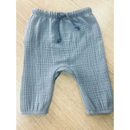 Брюки из муслина свободного синего цвета - легкие, невесомые, они точно понравятся вашему ребенку.