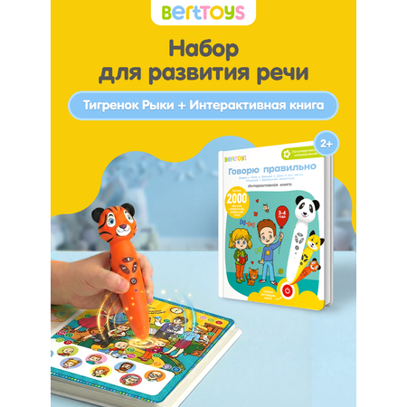 Умный логопедический набор: игрушка - тренажер для запуска и постановки речи - ручка Тигренок Рыки + развивающая интерактивная книга "Говорю правильно (часть 1)" для детей от 2 до 5 лет.