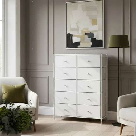 "Комод с ящиками Leset «Хайди 10» – это конструкция, обеспечивающая много места для хранения, при этом занимает мало места. Будет уместен в любом помещении и даже в ванной комнате из-за водоотталкивающей пропитке на столешнице. Модульный комод изготовлен из металлического каркаса и имеет надежные пластиковые ножки, которые сберегут пол, а также помогут отрегулировать комод по высоте. Ящики – экокожа с металлическими ручками-кнопками и нетканый материал – спанбонд, благодаря которому один ящик выдерживает 10 кг.