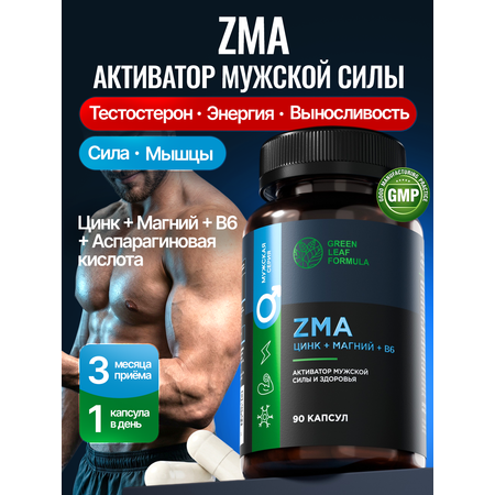 ZMA тестостерон активатор мужской силы Green Leaf Formula зма витамины для роста мышц и выносливости для энергии