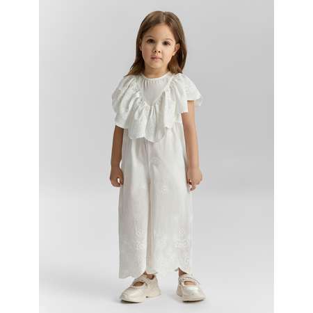 • Рюши и вышивка ришелье — добавляют визуальный акцент Детский комбинезон с брюками удобно носить в детский сад или на прогулку на лето.