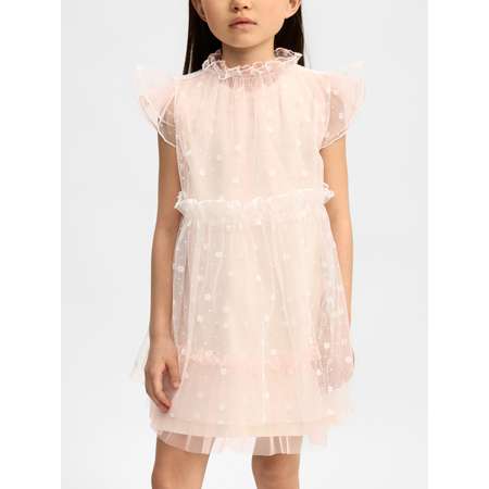 Платье праздничное для девочки состоит из трёх слоёв, которые можно носить вместе или комбинировать. Нижний слой выполнен из 100% хлопка и обеспечивает комфорт при носке. Верхние слои выполнены из лёгкой сетки и создают нарядный образ.