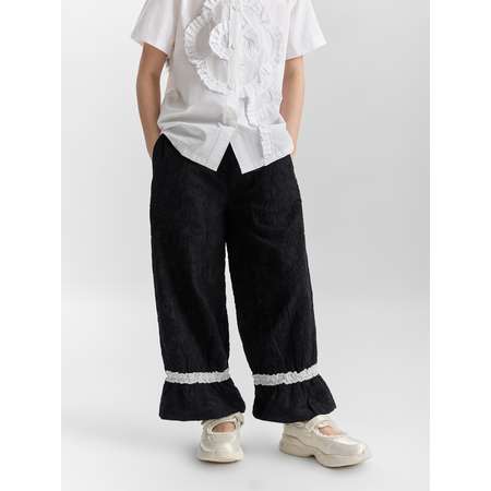 • Ткань с вышивкой — добавляет визуальный акцент Брюки для девочки станут удобным решением на лето. Штаны на резинке комфортны в носке и легко сочетаются с базовыми вещами детского гардероба.