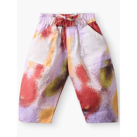 Широкий свободный фасон делает штаны для мальчика удобной для малышей и не сковывает движения. Пояс выполнен на мягкой резинке и дополнен внутренним шнурком для регулировки посадки. Брюки для девочки дополнены двумя боковыми и двумя задними накладными карманами.