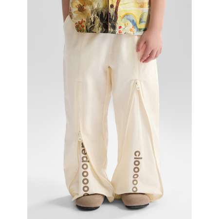 Брюки для мальчика выполнены из натурального хлопка, который хорошо пропускает воздух и остаётся приятным к телу. Материал обеспечивает комфорт в течение дня и подходит для детской кожи. Штаны для девочки имеют зауженный книзу крой, благодаря чему брюки для малыша аккуратно смотрятся и удобно сидят. Пояс выполнен на мягкой резинке и дополнен внутренним шнурком для регулировки посадки. Брюки дополнены двумя боковыми карманами. Функциональная молния на брючине позволяет изменить форму модели: при расстёгивании брюки становятся более прямыми. Внутри расположен декоративный принт, который добавляет модели интересную деталь.