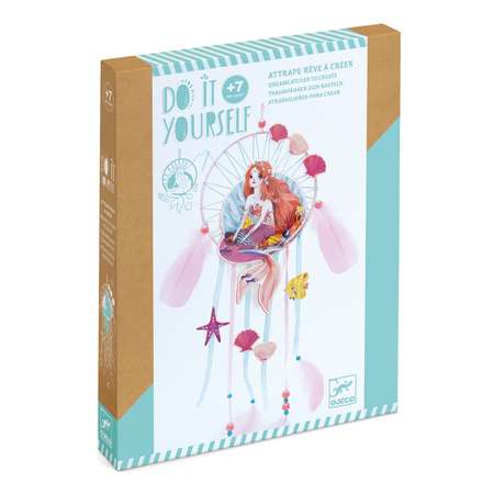 Полный набор для творчества по изготовлению поэтического ловца снов, украсив изображение русалки разноцветными нитками, бусинами, лентами и перьями. Красивый декоративный предмет, который можно повесить в спальне, чтобы прогнать дурные сны.