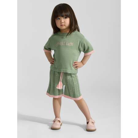 Одежда для малышей Happy Baby — лёгкий и удобный комплект для тёплого сезона, созданный с заботой о комфорте ребёнка. Набор включает в себя свободную футболку и шорты, которые вместе формируют аккуратный и стильный образ. Такой набор для новорожденного подходит для повседневных летних прогулок и отдыха дома. Универсальный комплект одежды для малышей можно использовать как удобный костюм на каждый день или как легкую пижаму для девочки, так как благодаря мягкой пряже и продуманному крою эта детская одежда для малышей обеспечивает комфорт даже в жаркую погоду. Комплект для девочки состоит из объёмной футболки и удобных шорт. Футболка украшена аккуратным рисунком на груди и контрастными вставками по горловине, рукавам и низу изделия. Шорты дополнены декоративной отделкой по низу и шнурком на поясе с кисточками, который помогает комфортно зафиксировать посадку. Комплект для малышей связан из мягкой пряжи с натуральным составом. Хлопок обеспечивает воздухопроницаемость и делает одежду приятной для нежной детской кожи, а добавление вискозы делает материал мягче и легче. Благодаря этому ткань становится менее пушистой, приобретает гладкость и лёгкий блеск, а также лучше сохраняет форму после стирок. Такой комплект для малыша можно носить как единый образ или сочетать элементы отдельно. Этот костюм для девочки сочетает комфорт, мягкость и аккуратный дизайн.