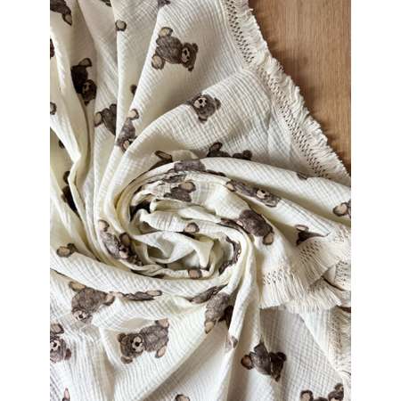 Муслиновый плед Ладушки 100Х130 см детский, мишки на молочном