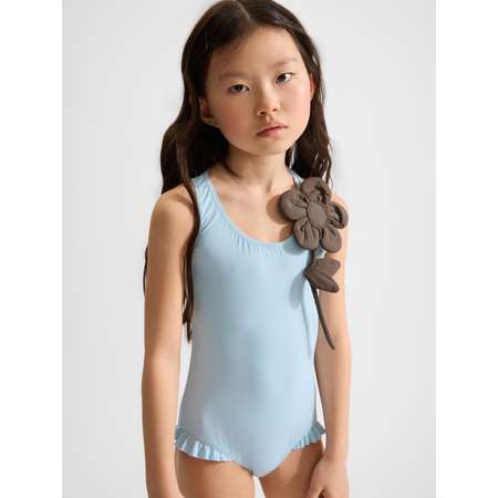 Купальник слитный выполнен из мягкой ткани с защитой от солнца UPF50+. Материал быстро сохнет, хорошо пропускает воздух и подходит для чувствительной кожи ребёнка. Слитный купальный костюм на лямках удобно надевать и снимать. Изделие не сковывает движения и обеспечивает комфорт даже при длительной носке. Декоративный объемный декор в виде цветочка и аккуратные оборки создают нежный акцент и делают модель более нарядной.