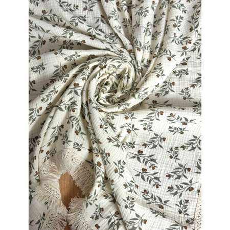 Муслиновый плед Ладушки 100Х130 см детский, веточки на молочном