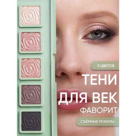 Тени для век в пятицветной палитре, разработанные по классическому принципу светотени: блик, свет, полутень I, полутень II, тень. Такая раскладка позволяет создавать натуральный объем, делает растушёвку простой и интуитивно понятной как для профессионалов, так и для тех, кто только осваивает макияж.