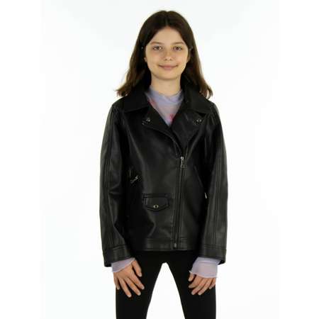 Стильная демисезонная коженка для девочки из плотной матовой эластичной мягкой экокожи это тренд 2026. Одежда прямого силуэта с асимметричной молнией, рукавом прямого кроя и отложным воротничком, декорирована заклепками, модными металлическими элементами и врезными карманами на молнии.