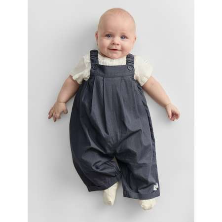 Полукомбинезон для мальчика выполнен из лёгкой варёной джинсовой ткани из хлопка, которая остаётся мягкой и приятной к телу. Натуральный материал хорошо пропускает воздух и подходит для тёплой погоды. Свободный покрой полукомбинезона для новорожденных обеспечивает комфорт во время активного движения ребёнка.