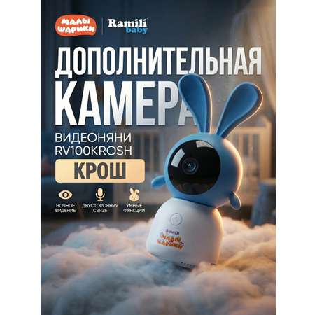 Wi-Fi 2K Видеоняня Ramili Baby RV100CKROSH Крошик, Малышарики – это надёжное устройство для комфортного удаленного наблюдения за ребенком внутри дома и далеко за его пределами. Благодаря современных технологиям и использованию передовых компонентов Ramili Baby RV100C можно назвать одной из самых безопасных устройств для удаленного наблюдения за ребенком. Эта модель не потеряет своей актуальности для родителей, ведь с помощью камеры можно не только контролировать малыша или работу няни. Когда малыш подрастет, камера послужит устройством безопасности для наблюдения за домом или, например, за домашним питомцем.