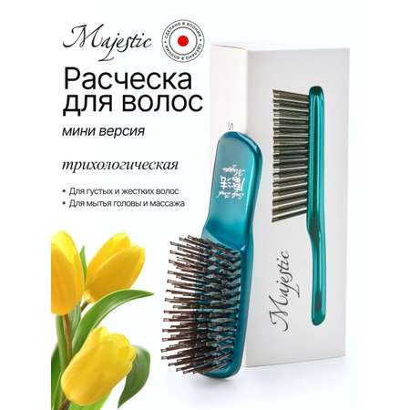 Расческа Majestic мини версия — это уникальный профессиональный трихологический инструмент, созданный японскими учеными для деликатного очищения кожи головы и бережного расчесывания. Подходит для густых и жестких волос, а также для низкой чувствительности кожи головы.