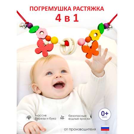 - Неяркие приглушенные цвета окрашенных деталей, простые формы и мелодичный звон бубенчика не перегружают восприятие и надолго привлекают внимание ребенка.