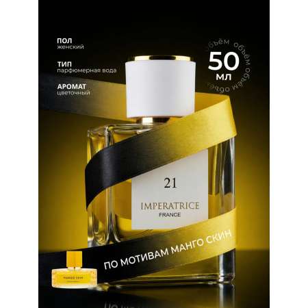 Imperatrice France 21 - нежный, манящий, солнечный аромат – стильная летняя композиция, которая построена вокруг чарующего запаха сладкой мякоти и кожицы манго в окружении освежающих цитрусов и изысканного цветочного букета.