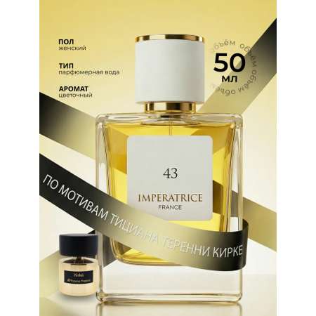 Сердце парфюма Императрица Франции 43 состоит из ярких, самобытных акцентов таинственного ландыша. Магический, искушающий аромат гелиотропа является основополагающей нотой шлейфа парфюма. Его томная сладость, разбавленная свежестью древесных нот, постепенно приобретает вкусный ванильно-мускусныйоттенок.