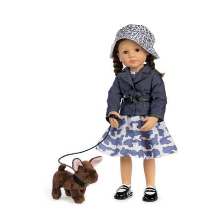 В комплекте:- кукла - платье - панама - джинсовая куртка - носки - туфли-лоферы - собачка с поводком