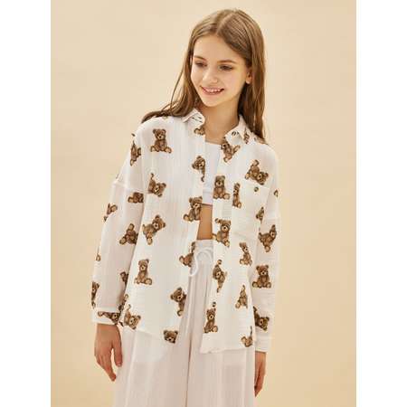 Нежная и стильная муслиновая рубашка для девочек от премиум бренда Noble People — это идеальный выбор для летнего гардероба маленьких модниц. Модель выполнена из мягкого, дышащего 100% хлопка, что делает её комфортной для повседневной носки, прогулок и отдыха на море. Белая рубашка украшена милыми рисунками коричневых мишек, которые создают игривый и очаровательный образ. Такой принт делает вещь заметной и стильной, идеально подходящей для юных модниц, любящих яркие и милые детали. Модель выполнена в оверсайз-силуэте, что обеспечивает свободу движений, комфорт и лёгкость в носке. Застёжка на пуговицах позволяет ребёнку легко самостоятельно надевать рубашку и регулировать посадку, а один накладной карман на груди добавляет практичности и модный акцент. Размерный ряд 122–164 позволяет подобрать рубашку для девочек разного возраста и роста. Муслиновая ткань мягкая, лёгкая и дышащая, поэтому рубашка идеально подходит для жаркого лета, прогулок и отдыха на море. Эта белая рубашка с милыми рисунками легко сочетается с джинсами, шортами или летними юбками, создавая стильные и актуальные образы для девочек на каждый день. Оверсайз, мягкий хлопок и очаровательный принт делают её незаменимой вещью в летнем гардеробе, а премиальное качество гарантирует долгую носку и сохранение формы после стирок. Муслиновая рубашка для девочек от Noble People — это сочетание премиального материала, милого дизайна и продуманного кроя. Она создаёт лёгкий, модный и комфортный образ, который придётся по вкусу детям и понравится родителям.
