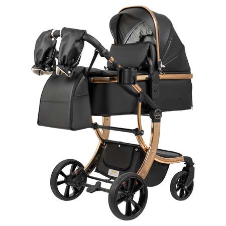 Коляска выполнена из экокожи премиум-класса с водоотталкивающей пропиткой, которая не только придает изделию изысканный вид, но и обеспечивает долговечность и простоту в уходе.
